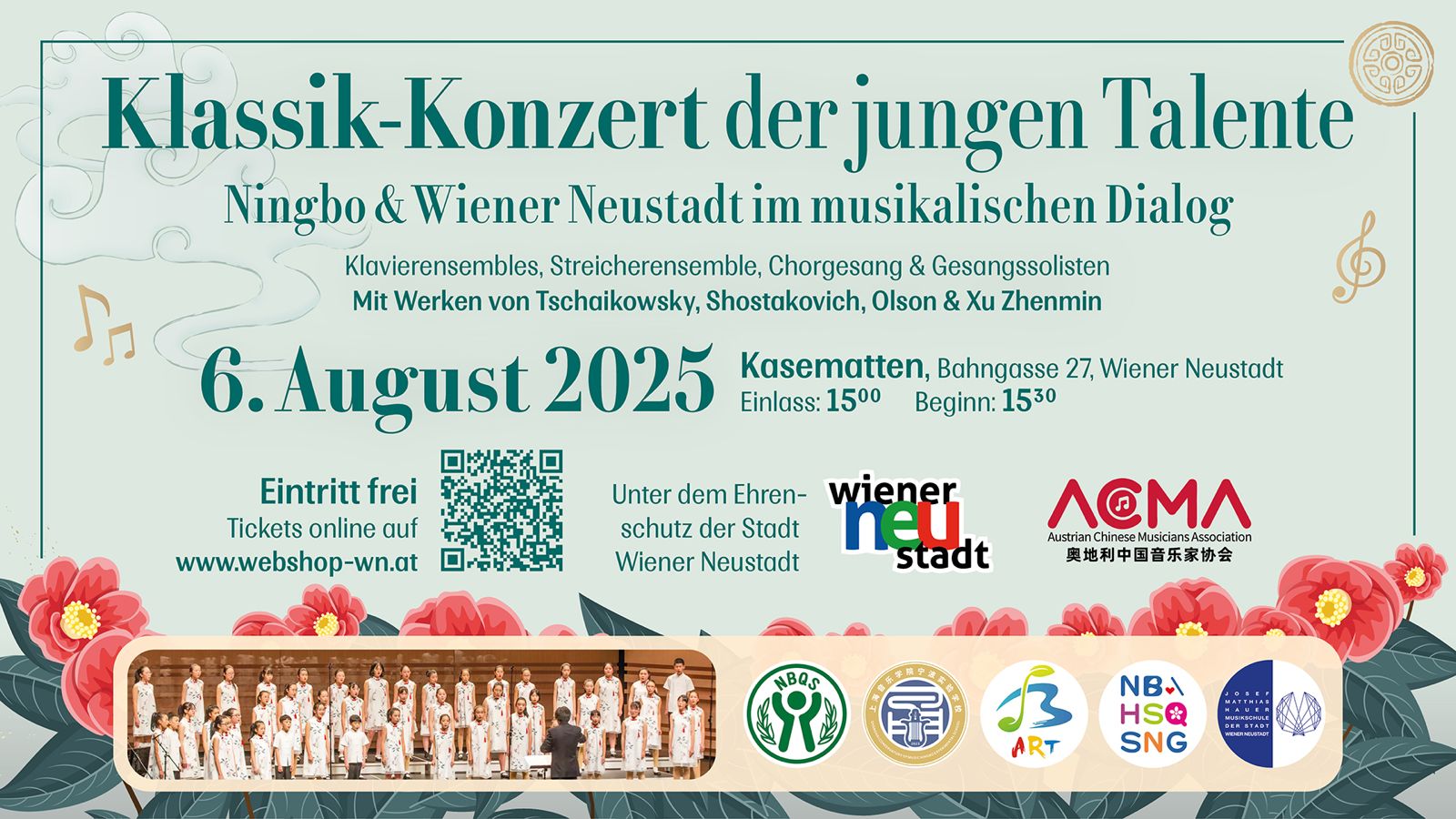 06. August 2025, Klassik-Konzert der Jungen Talente – Uraufführung von Robert Werners neuester Komposition für Ningbo im Rahmen des musikalischen Dialogs zwischen Ningbo und Wiener Neustadt
